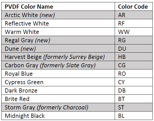 - New PVDF Colors Added