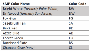 CBC is renaming two SMP colors and adding one new color, Charcoal Gray, which is now also available as a standard IMP color.